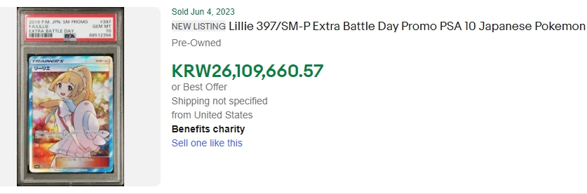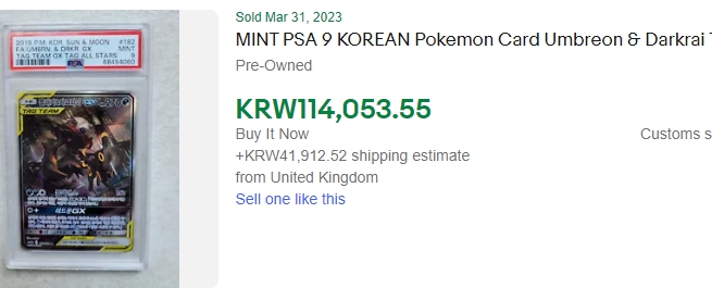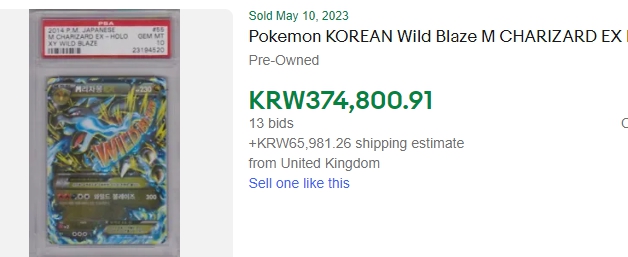 한글판 포켓몬카드 컬렉터들이 생각해야 될 것은 만약에 일판 카드가 계속 오르고 지금 시세를 유지한다면 한글판도 분명 지금보다 비싼 가격에 구매할 수 있다고 봅니다. 그때를 대비해서 PSA를 받아놓는게 좋습니다. 해외 컬렉터들에게 의외로 비싸게 거래될 수도 있습니다. 등급 대행 업체에서 이베이 판매 대행까지 가능하며 한국시장이 무너져도 최후의 수단으로 이베이로 넘길 수 있습니다.